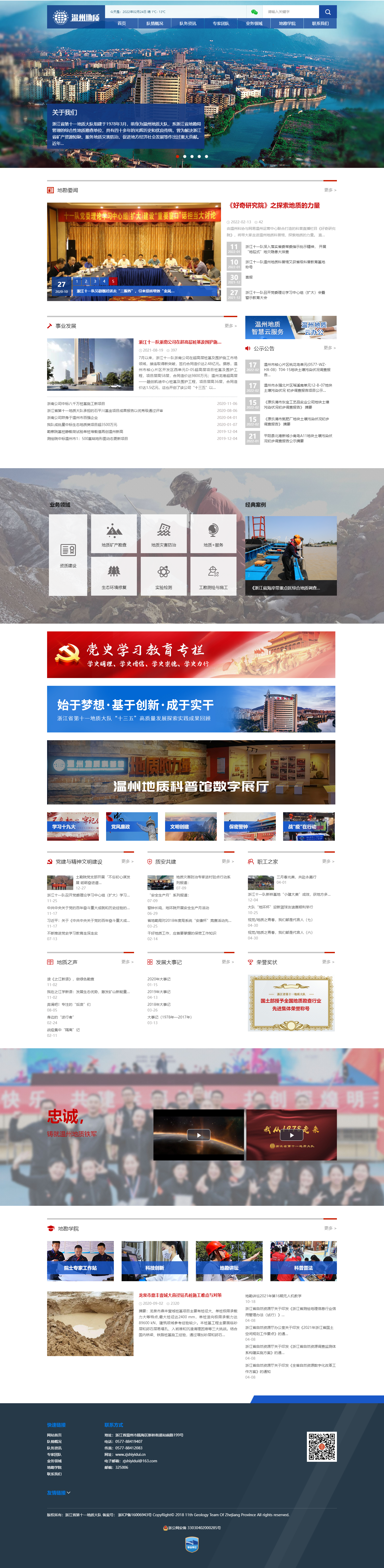 浙江省第十一地質(zhì)大隊(duì)組建于1978年3月,前身為溫州地質(zhì)大隊(duì),系浙江省地勘局管理的綜合性地質(zhì)勘查單位,具有四十多年的光輝歷史和優(yōu)良傳統(tǒng),曾為解決浙江省礦產(chǎn)資源短缺、服務(wù)地質(zhì)災(zāi)害防治、促進(jìn)地方經(jīng)濟(jì)社會發(fā)展等作出過重大貢獻(xiàn)。近年來,主要為地方提供資源勘查、地質(zhì)災(zāi)害防治及地質(zhì)+等地質(zhì)科技特色支撐服務(wù)。先后榮獲全國國土資源系統(tǒng)先進(jìn)集體、全國國土資源系統(tǒng)功勛集體、全國地質(zhì)勘查行業(yè)先進(jìn)集體、浙江省文明單位、浙江省五一勞動獎狀、浙江省地質(zhì)災(zāi)害防治先進(jìn)集體等榮譽(yù)稱號。